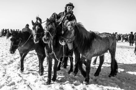 Aart komt aan de slot van de paardenrace aan. Het is hartje winter 2016, 20 graden onder nul. De race wordt gehouden ten zuiden van de hoofdstad Ulaanbatar. De omstanders moedigen aan en vermaken zich met elkaar.